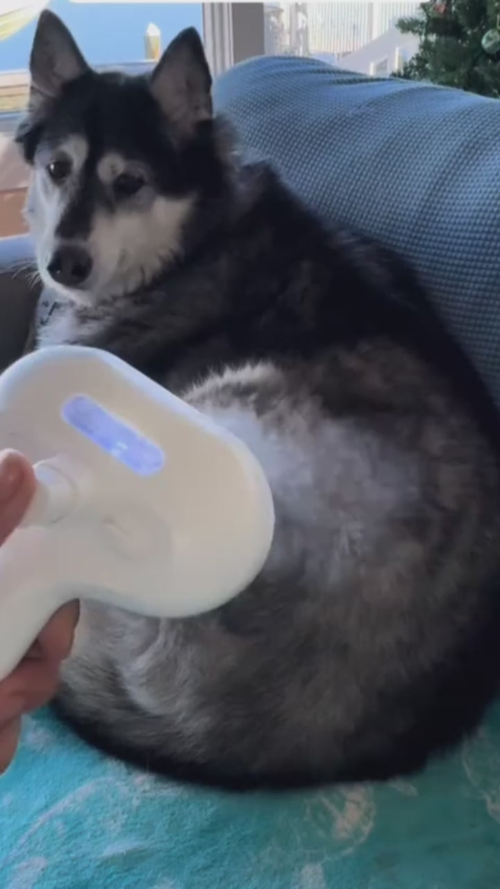 Waar gewone borstels haren lostrekken, verzorgt onze stoomborstel de vacht terwijl je borstelt. De zachte stoom opent de haren licht, waardoor losse haren, vuil en klitten moeiteloos verdwijnen – zonder trekken of pijn.